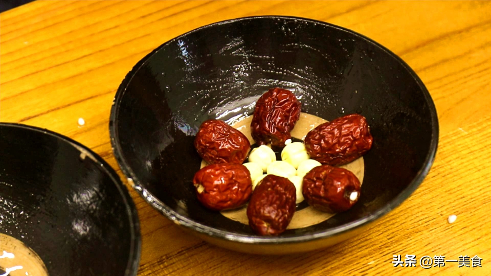 糯米、红枣、花生还另外加了一些莲子,烧半锅开水,把糯米倒进去煮一下,煮至全是白芯的状态。然后倒入花生一起煮至发黏,大概三四成熟,汤有些泛白就可以了。把糯米和花生倒出来,沥干水分。