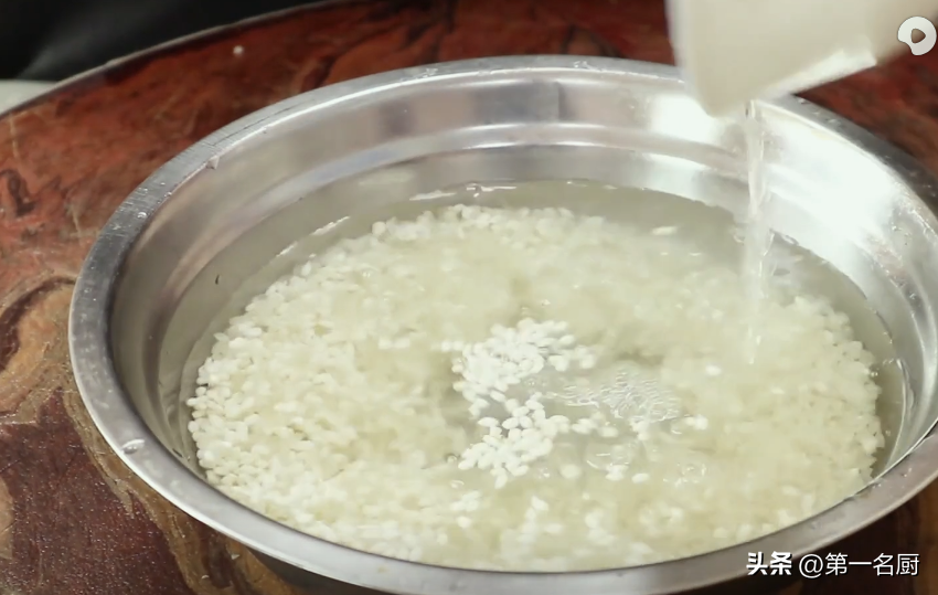 1.准备大米150克,糯米50克, 加入清水浸泡10分钟备用。