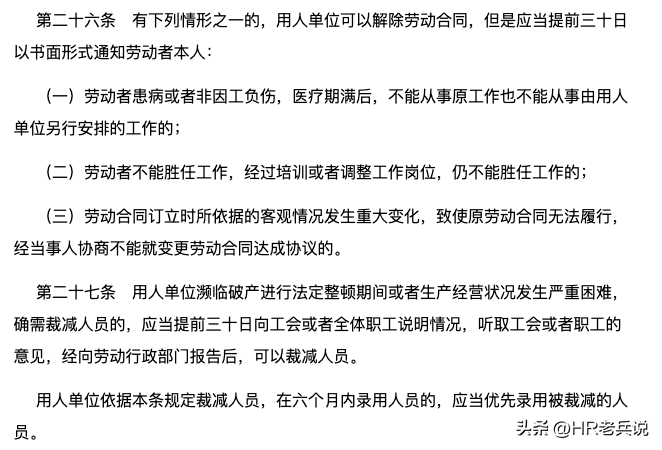 《劳动法》第二十六、二十七条